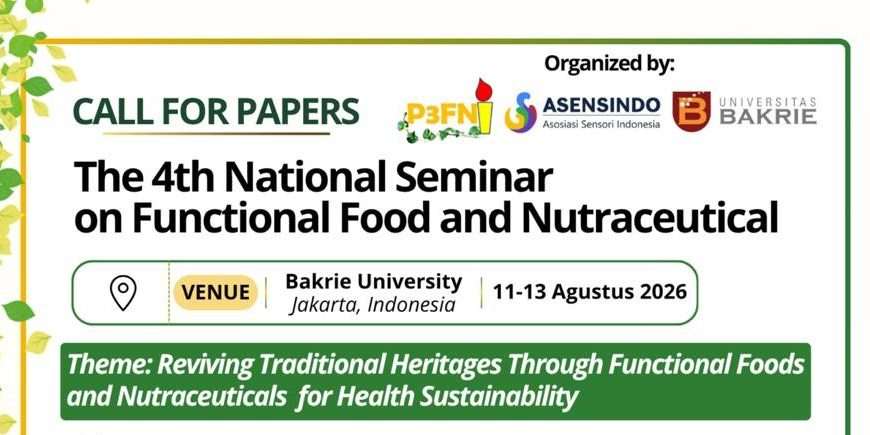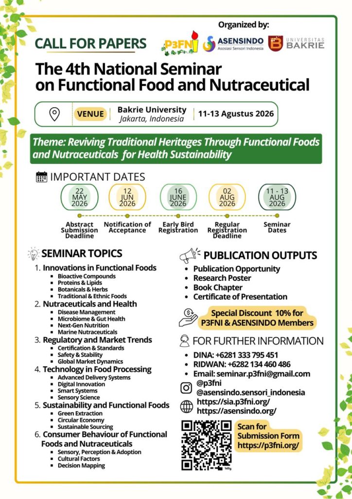 Perhimpunan Penggiat Pangan Fungsional dan Nutrasetikal Indonesia (P3FNI) bersama dengan Asosiasi Sensori Indonesia (Asensindo) akan menyelenggarakan: